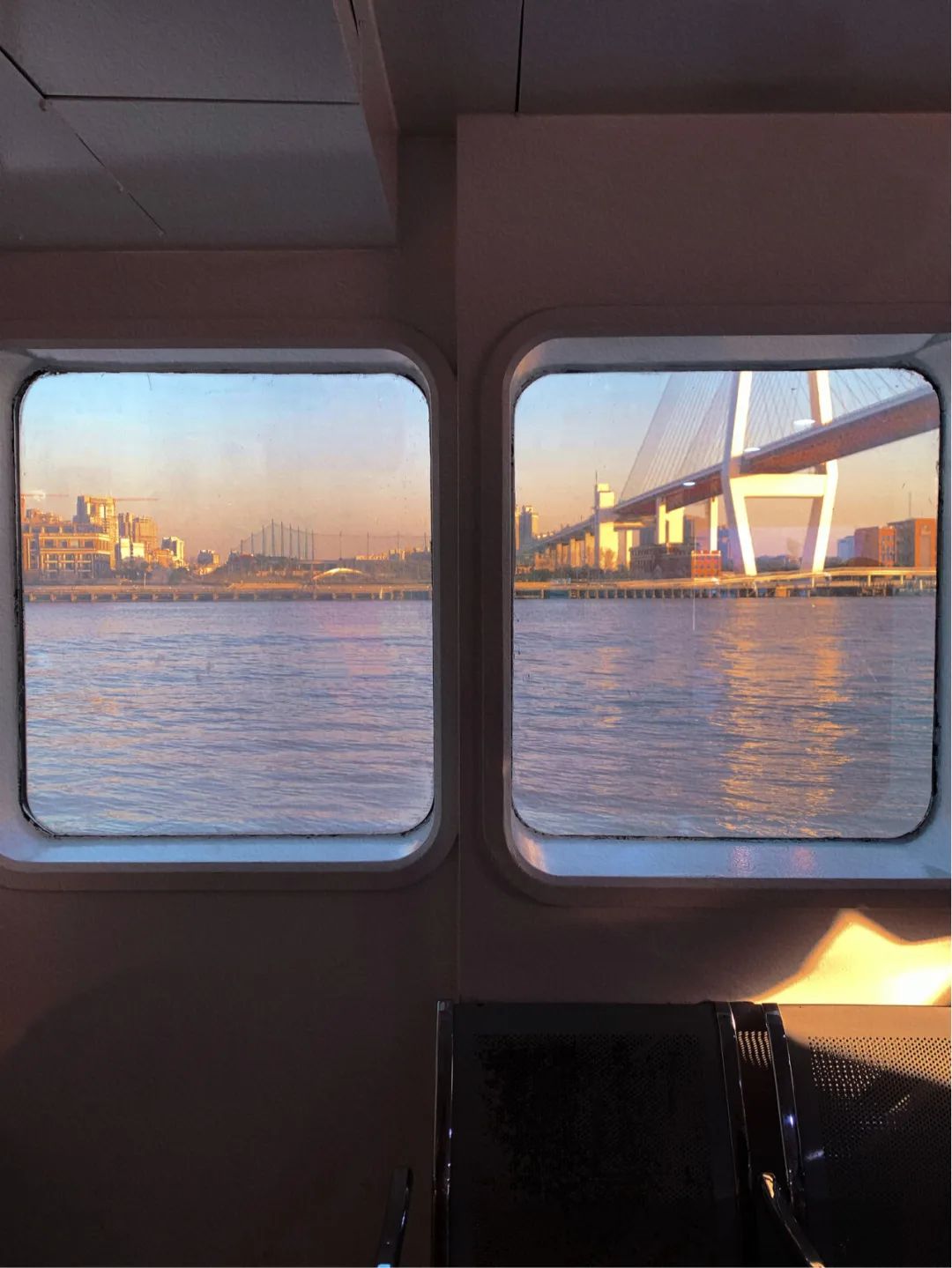 轮渡是属于城市里的另一种慢节奏。南陆线,沿途跨过南浦大桥,可以看到大桥两岸交相辉映,是一条适合观赏落日的线路。