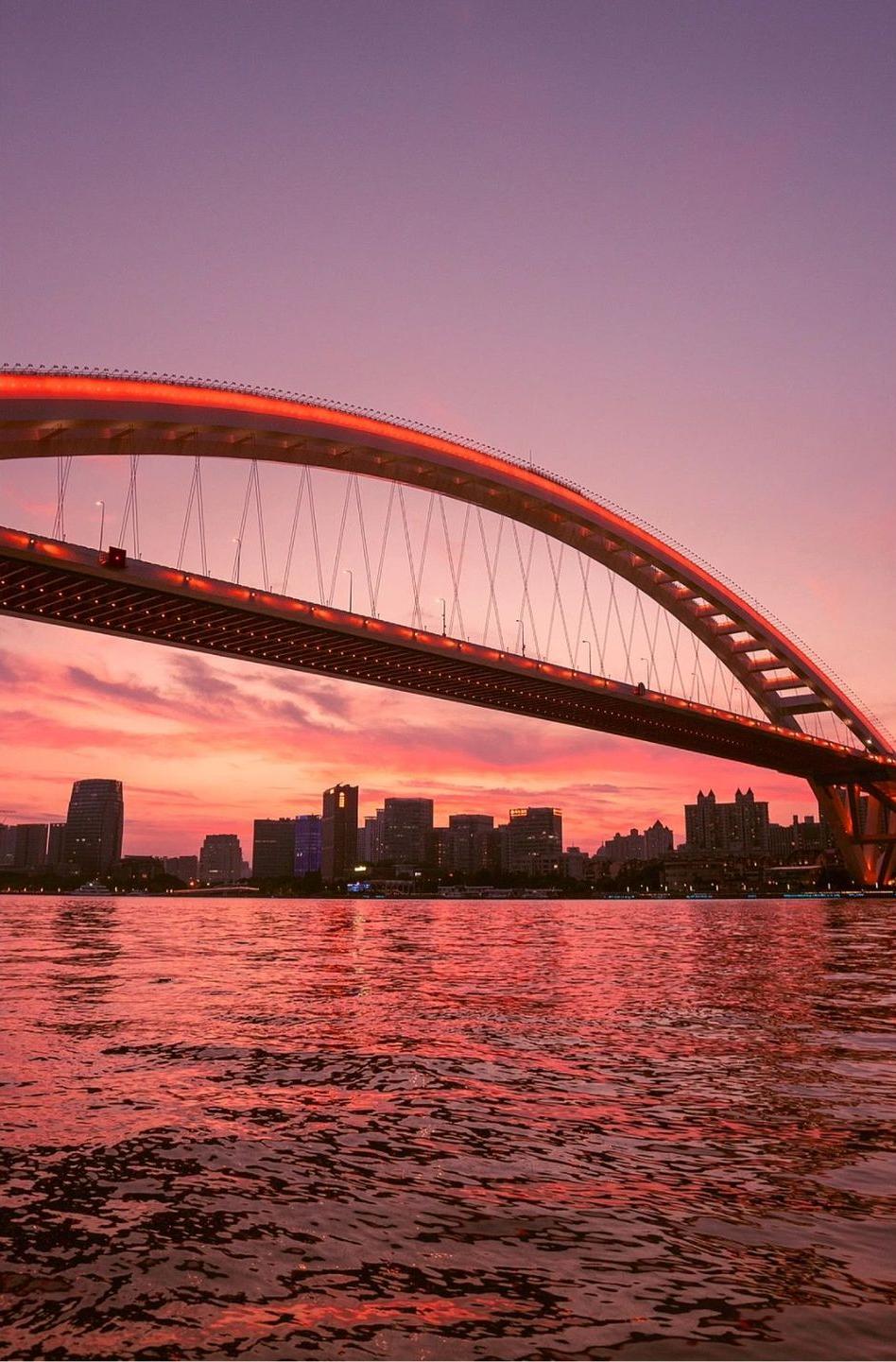 卢浦大桥附近的8号观景平台是观赏落日的绝佳地点。这里靠近江边,吹吹海风,散散步,日落时分夕阳醉人,不同时间还能欣赏不同的风景。