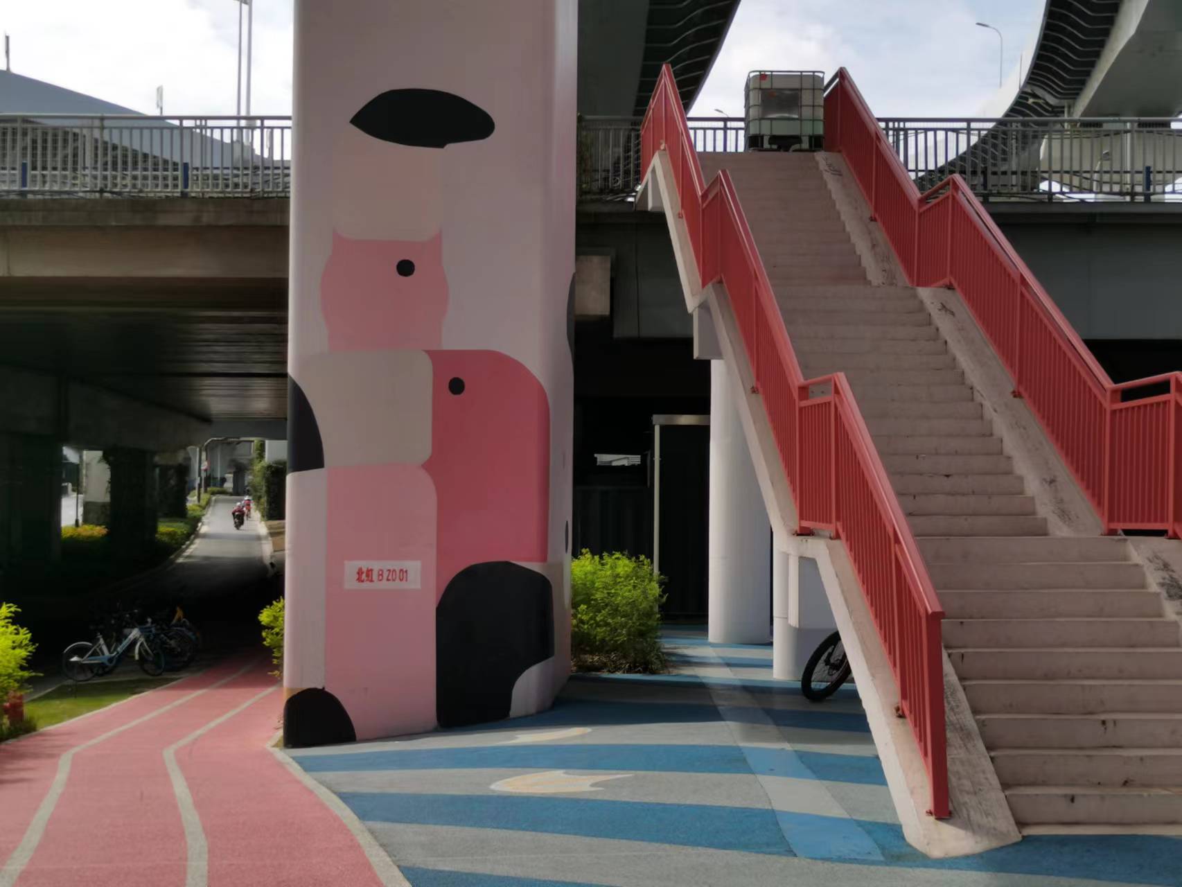 位于北翟路中环桥下的洛克公园内,几位年轻人正背靠着粉红色的背景墙和运动设施拍照录像,询问后得知,他们正在为自己的自媒体平台拍摄素材,“我们想拍摄运动主题的视频,这里的设施很有艺术感,最适合不过了。”苏州河桥下空间项目在近几年不断更新,以洛克公园为主的北翟路中环桥下空间内,则是象征自由、青春与热爱的“火烈鸟”主题,粉红色充斥着楼梯、墙面、篮球场,成为了既能锻炼,又能拍照打卡的“网红”景点。