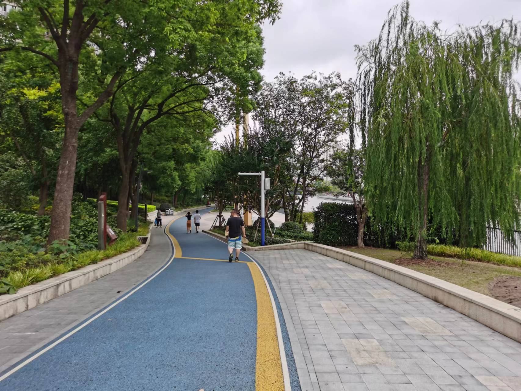 附近居民区的叶女士每天都会到华政段的滨河步道散步:“从小区走过来也就2分钟的事,在河边吹吹风,很惬意的。”据叶女士介绍,原本华政段的步道非常窄,只能容纳两人并行,“搞得人散步都没心情”。如今,踏上滨河步道,宽度3米的道路能让人轻松自在地奔跑和漫步。