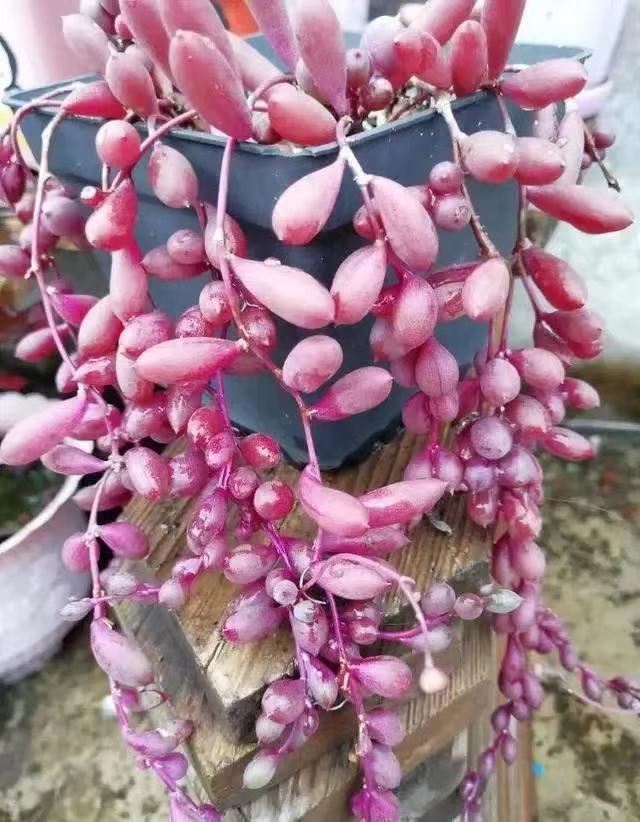 紫玄月是一种多肉类的吊兰花,它的叶片呈针式椭圆形,饱满多汁,枝条蔓延性强,叶片能随着光线的强弱而变化,当光线变强之后,它的叶片会变得和茎杆一样,呈现紫红色,唯美又奇特。春秋时节,能开出黄色的小花,和紫红色的叶片搭配在一起,会给人一种浪漫唯美的感觉。