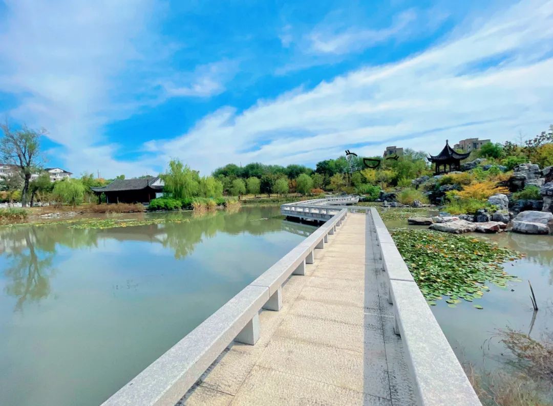 青溪园位于环城水系淀浦河南岸,青松路西侧,紧邻全国重点文物保护单位万寿塔,是进入万寿塔的门户。青溪园占地约3.5公顷,是一处具有江南园林元素的公共绿地,以假山为中心的山水园,设置有假山、水体、栈桥、驿站、茶室等。