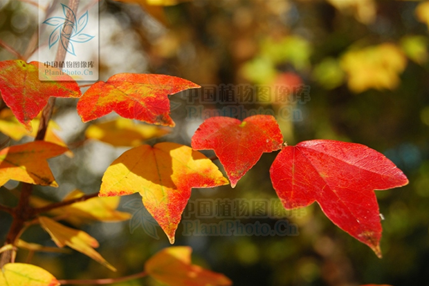 红色叶树种,又名三角枫。槭属落叶乔木,喜光稍耐阴。叶掌状 3 裂,基部椭圆形或倒卵形,先端尾状锐尖。秋叶暗红色或橙色。宜作庭荫树、行道树及护岸树种,也可栽作绿篱。