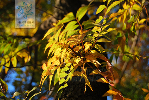 秋色叶树种。落叶乔木,偶数羽状复叶互生,小叶 5-7 对,披针形或卵状披针形,秋季叶片可变为橙黄或鲜红色,同时核果成熟呈紫红色或橙黄色,能一直保持到深秋;宜作庭荫树及山地风景树种。