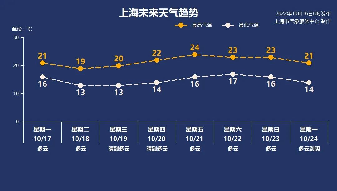 10月21日,周五:多云 16-24℃;