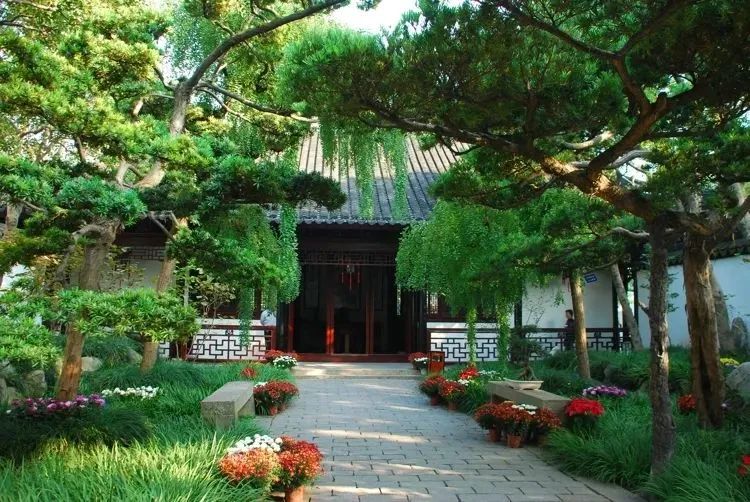 深秋之后,曲水园内庭院深深,松槐、桂花、银杏等点缀其中,秋花灿烂,一片热闹景象。