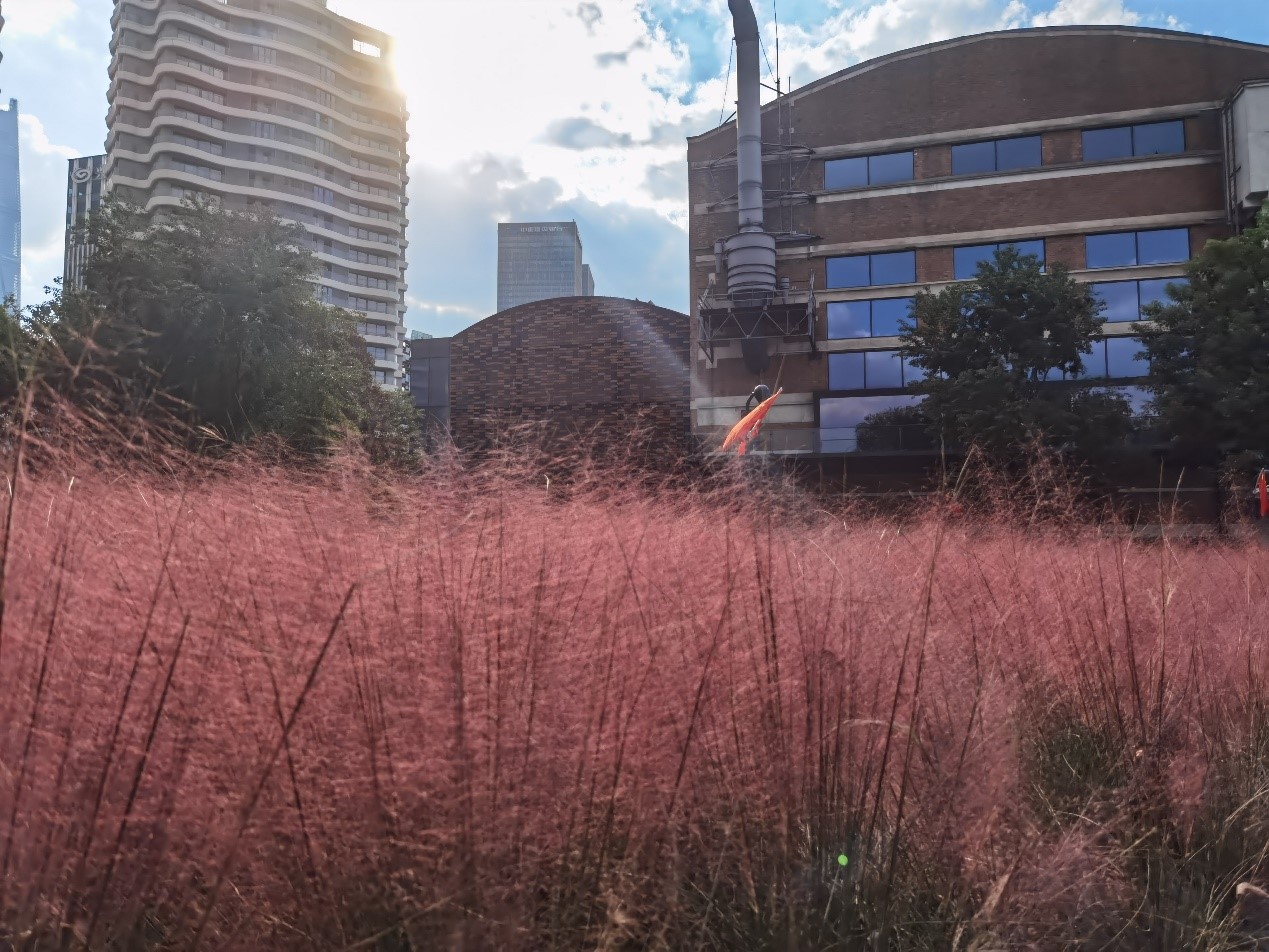 不仅是这里,在新华路上的口袋公园也能找到粉黛子的身影,狭长的空间在植物与镜面的映衬下将时尚与艺术融合的恰到好处,仿佛折射出了无限的自然花园。在申城的大街小巷或许还隐藏着更多的小众宝藏地等着你我去发现……