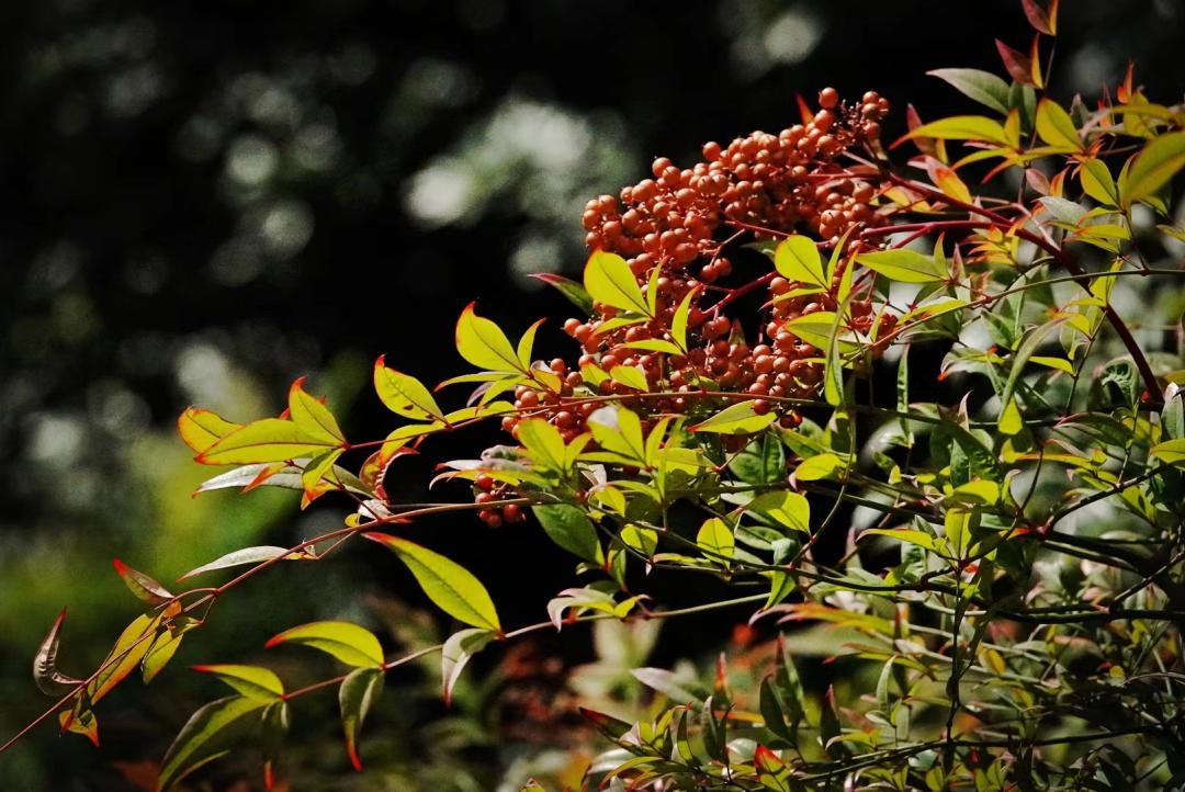 拍摄秋景时,可以选取斜侧光来拍摄。选择一个让阳光从叶子侧面照射过来的角度拍摄,就能拍到非常通透的色彩。