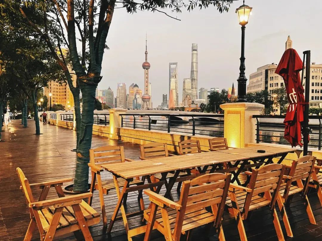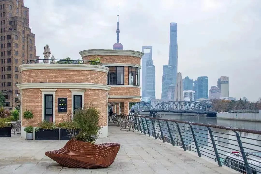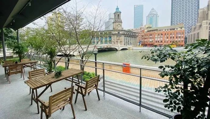 你可以选择坐在滨河外摆位,举上一杯咖啡和“四件套”合照,欣赏苏州河两岸的美景,领略精致的河畔风情。