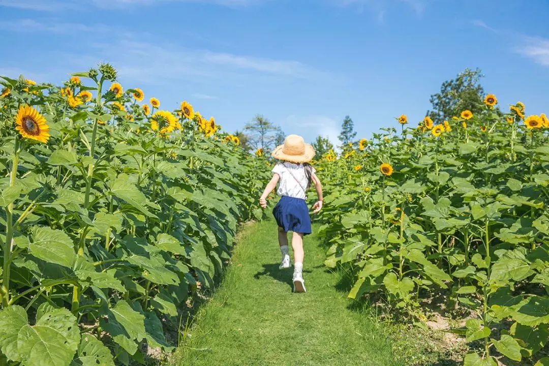 穿越在向日葵花海间,仿佛置身于漫画里的场景,金黄色的花朵与果实,相称在蓝天白云的背景下,美不胜收。向日葵的花盘如同一张张笑脸般,迎着太阳肆意绽放,在微凉的秋日给大家带来了一丝温暖。