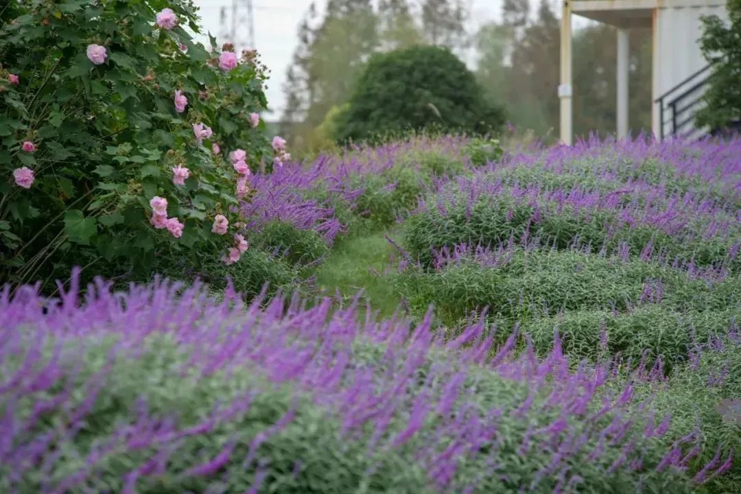 墨西哥鼠尾草穗状花枝傲然挺立,为花海增添了一抹神秘的紫色。