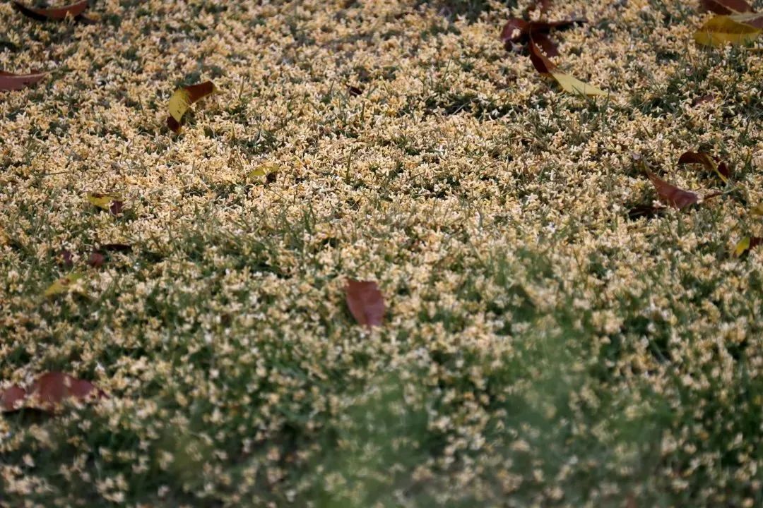 微风过处,花朵或轻轻落在行人的肩头,或洒满了一地的金黄,让人置身于一场秋的盛景。