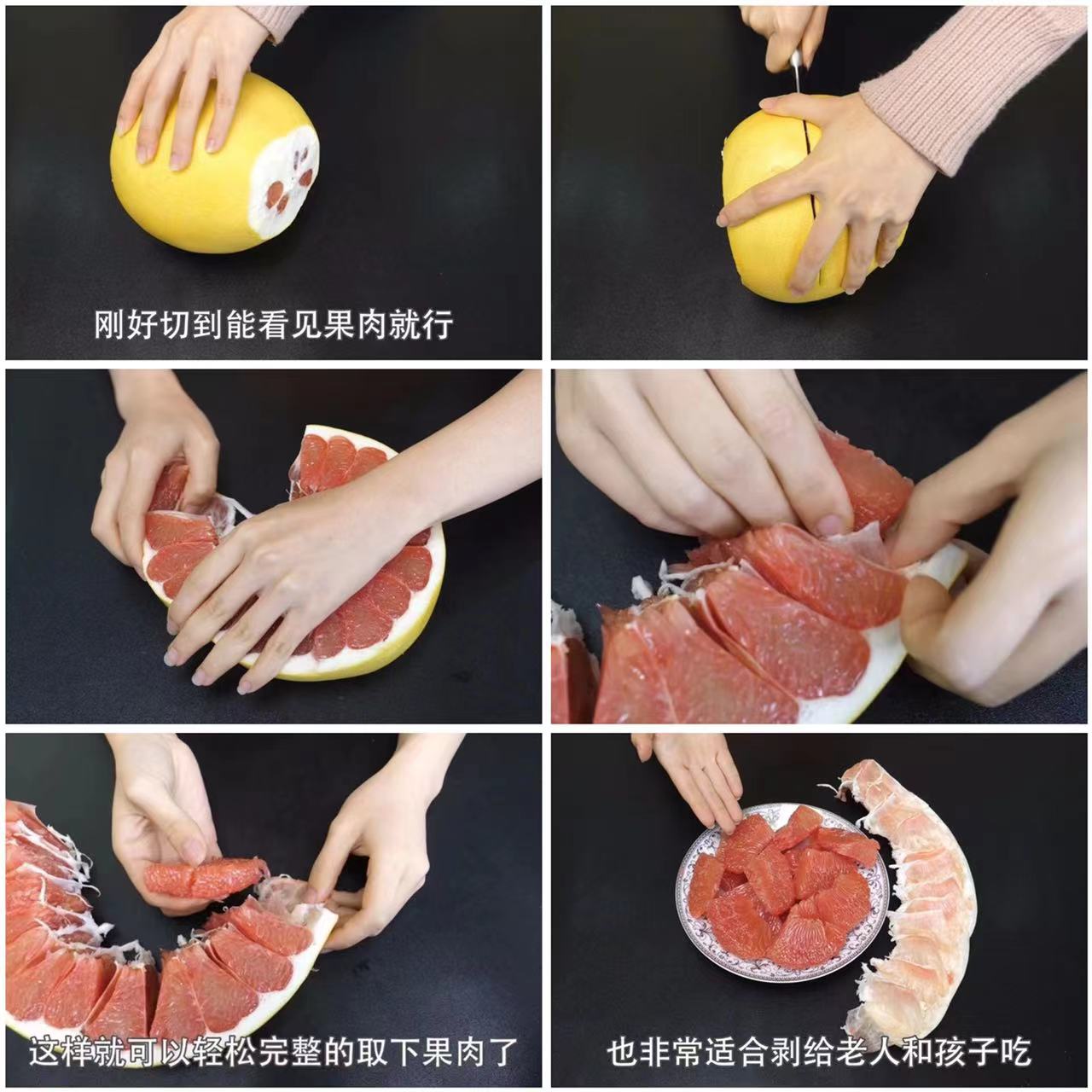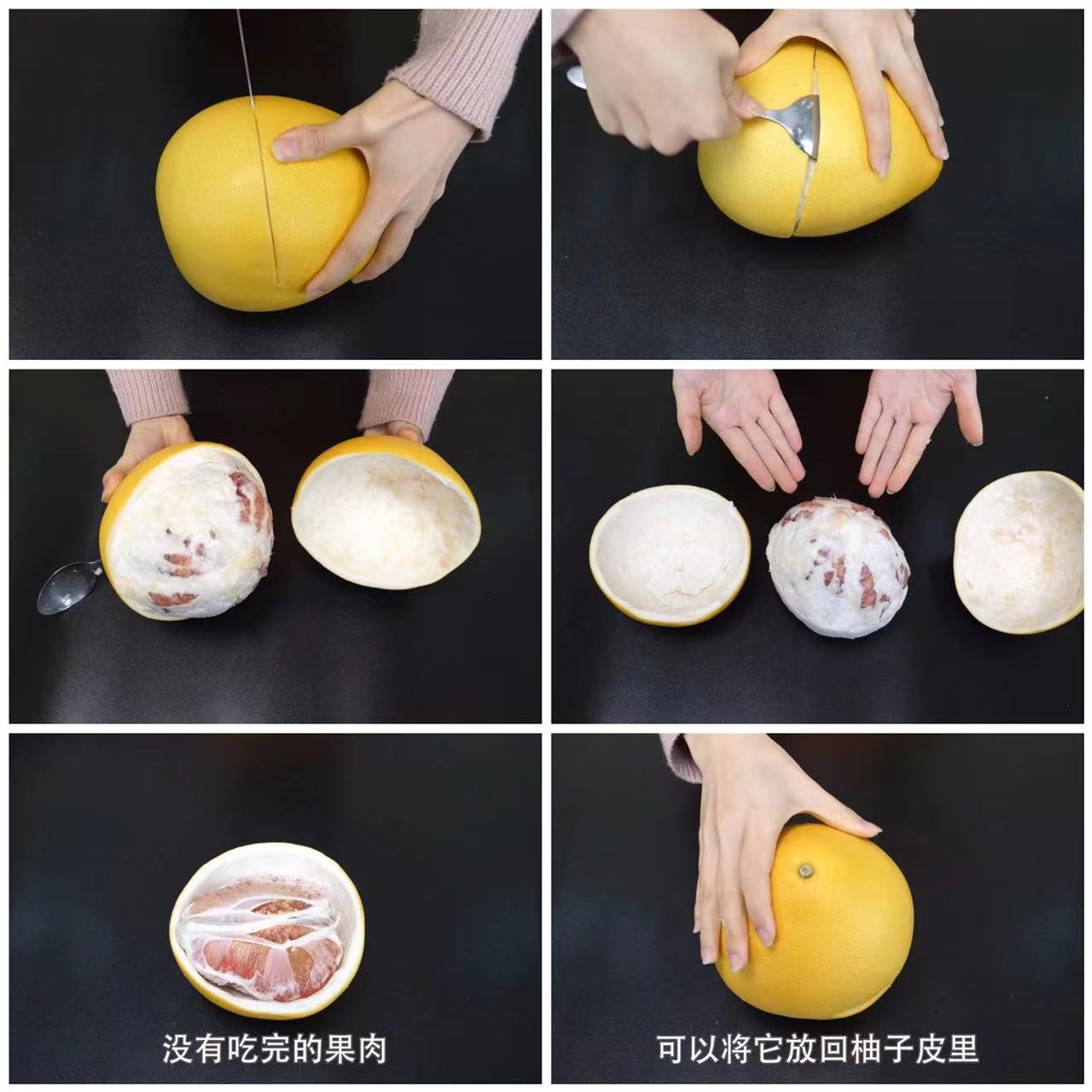这样剥的好处是没有吃完的柚子可以将它放回到柚子皮里,可以很好的保鲜果肉,防止水分蒸发。