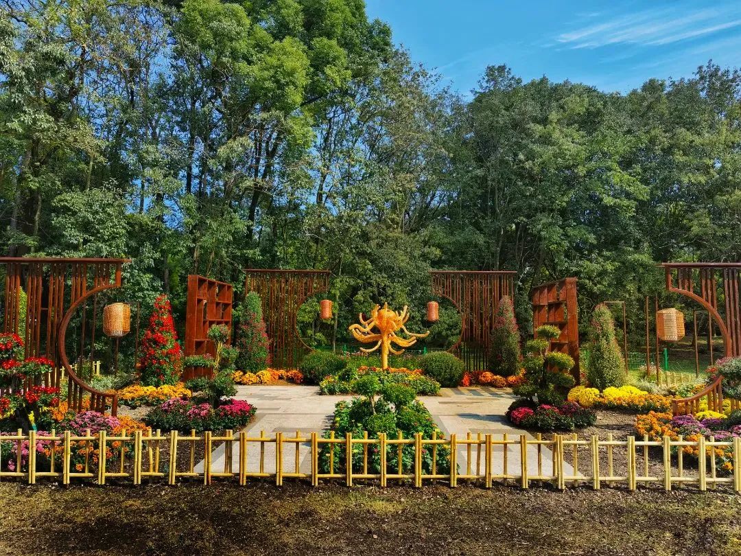 这菊花造景艺术映衬着秀美的公园景色,将为市民游客营造出一派自然野趣的秋日森林赏菊图。