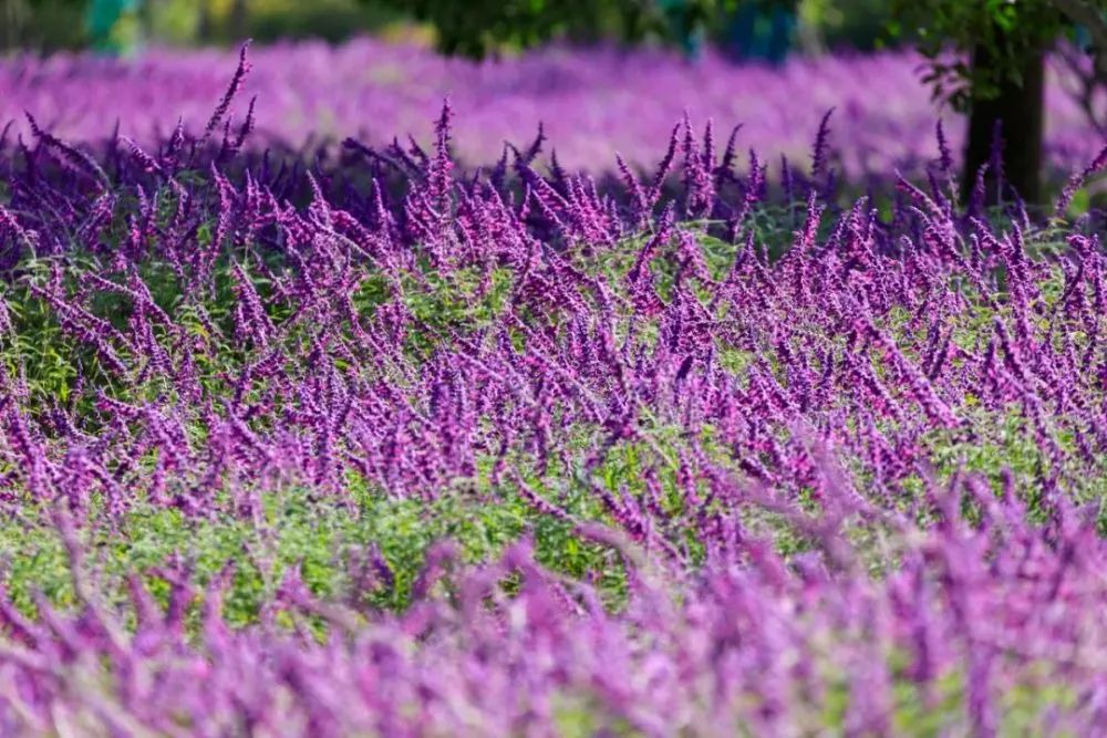 墨西哥鼠尾草穗状花枝傲然挺立,为花海增添了一抹神秘的紫色。