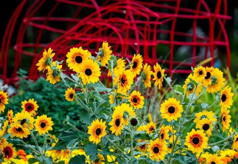 来到各公园绿地,各种特色菊科花卉争奇斗艳,红的高贵、黄的热烈、粉的妩媚、白的纯洁,阡陌相交,艳丽与清雅并存,妩媚与恬静相辅,绘制出了一幅惊艳的诗情画卷。