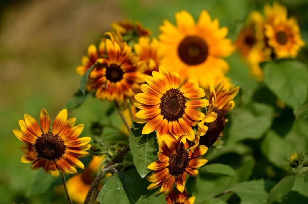 向日葵的花盘如同一张张笑脸般,迎着太阳肆意绽放,在微凉的秋日给大家带来了一丝温暖。
