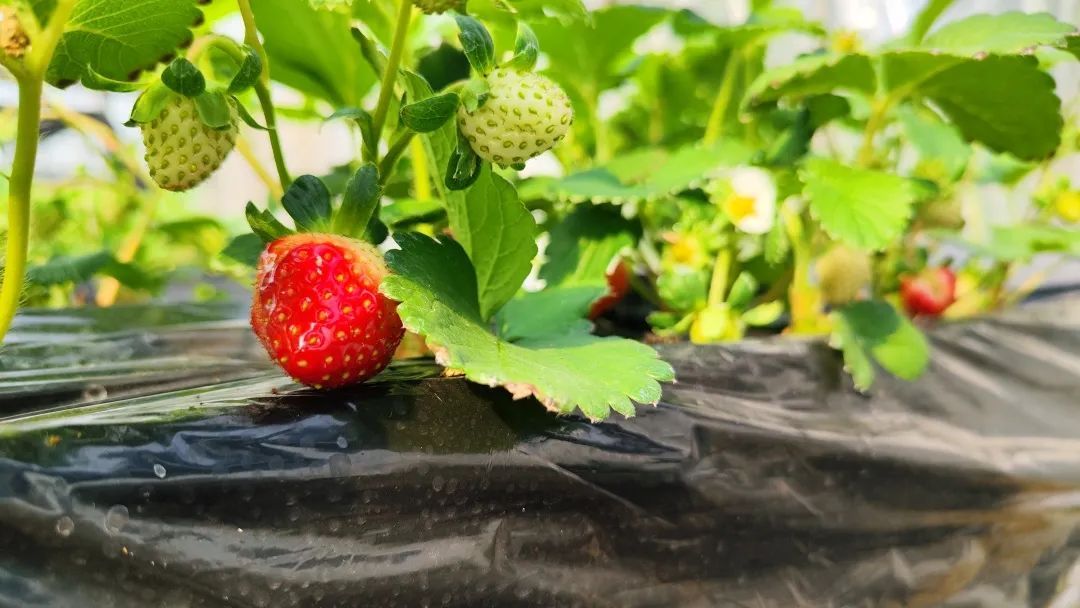 走进白鹤镇蔬果合作社,一片生机盎然的景象,草莓特有的清香扑鼻而来,少量头茬“雪里香”草莓已经成熟,鲜红饱满的果实点缀在翠绿的叶片之间,色泽诱人,让人忍不住就想“鲜”品尝冬日里的新鲜草莓。