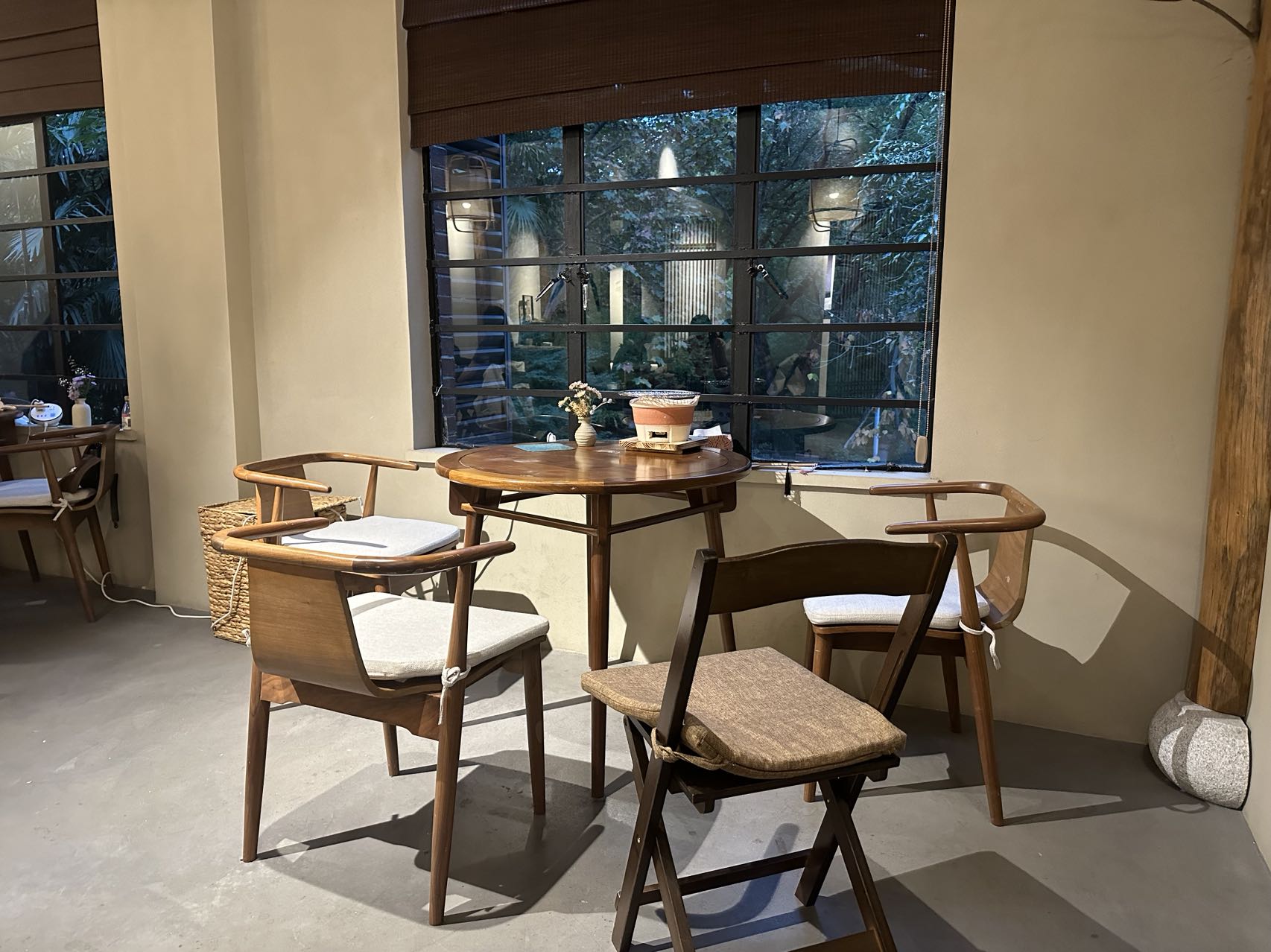 2楼的茶座分为开放空间和包厢两个部分,这一茶室与天山公园一墙之隔,窗外树影婆娑,窗内悠然煮茶,两者相映成趣,非常出片,因而窗边的茶座也格外抢手,是来此拍照打卡者最为心仪的位置。