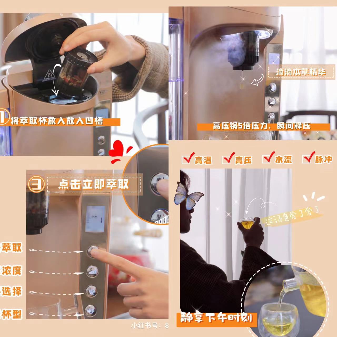 很多人觉得不就是泡茶吗?还不如买个泡茶壶,还便宜,但不少用过的小伙伴觉得通过匹配的温度、匹配的压力、匹配的水流、匹配的脉冲将本草内的精华萃取,更营养、好吸收、颜值又高,尤其适合懒人。