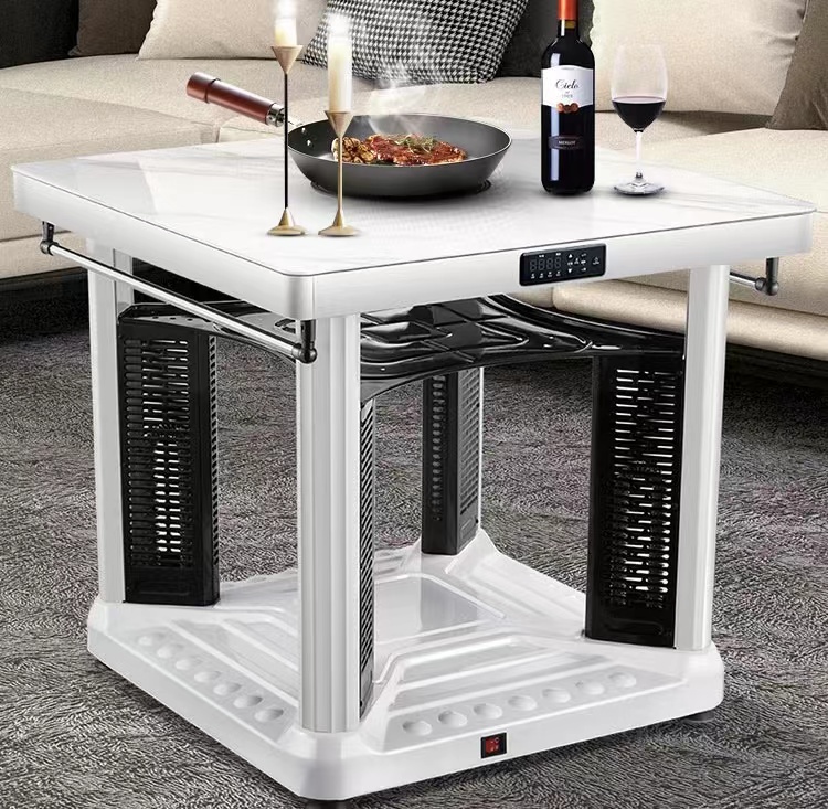 升级款烤火桌则不需要电火炉,是一体化的,有的桌子还有电磁炉,可以直接在桌子上炖火锅吃。