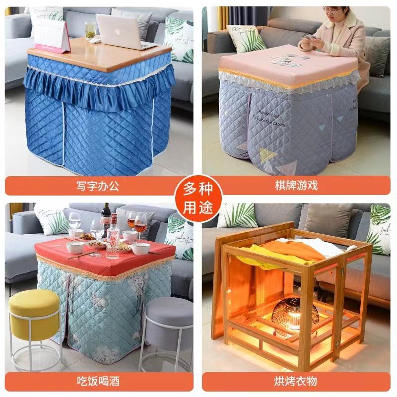 烤火被子是一体式的,跟桌子是配套的。只要把手一放进被子里,马上就会暖烘烘,只要坐在桌子旁就不想再挪脚。电火炉有过热保护,如果遇到异常温度过高会自动断电,安全性也有保障。