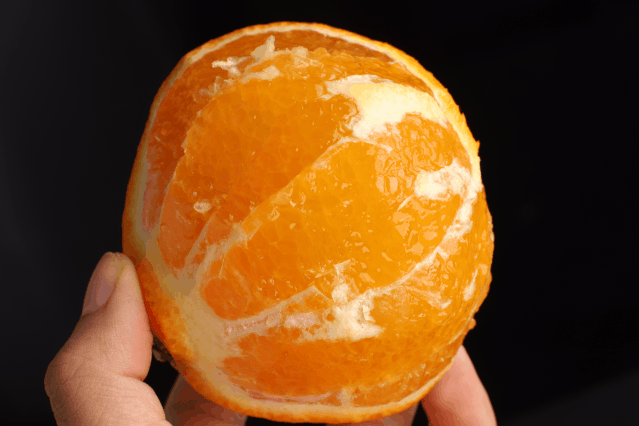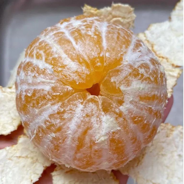 爱媛橙的果皮非常薄,普通橙子的果皮一般是爱媛橙果皮厚度的好几倍。