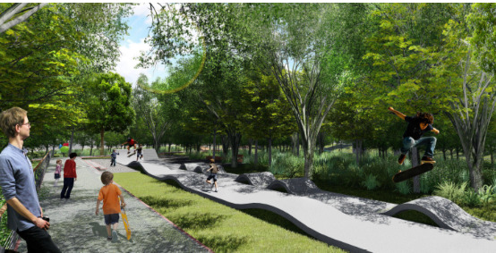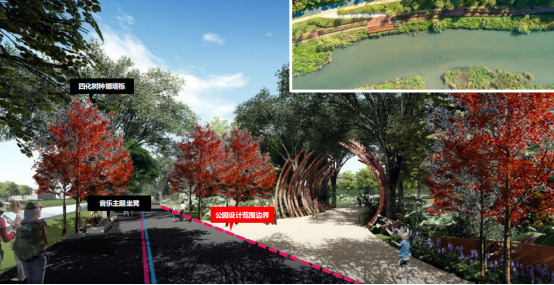 公园以“举头观林,俯首读书”为设计理念,强调人文艺术与自然生态和谐交融,未来将会是一座集林荫阅读、休憩交流、休闲健身为一体的郊野型生态休憩公园。