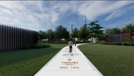 北外滩航海公园位于白玉兰广场对面,比邻世界会客厅,隔江相望浦东陆家嘴,改造面积1.4万余平方米。公园设计主题是“乘风破浪、引航未来”,整体由“时空航线”和”探索征途”一区一轴的景观结构设计布局;从公园入口到滨江通过“航运起源”“征途探索”“世界连接”三个板块构成航运文化公园的故事线索。