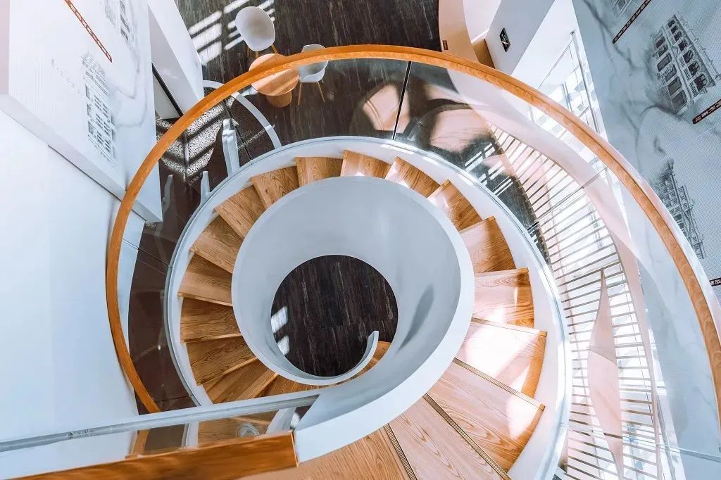 中庭挑空区用艺术旋转楼梯将8、9楼连接起来,便于读者在两层空间内自由活动。