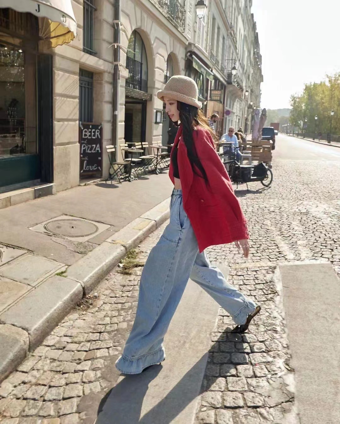 日常想穿洋红色的话,建议比例在50%以下。也就是说,衣服或者裤子选一项就好。毛衣、卫衣、衬衫都是不错的选择。