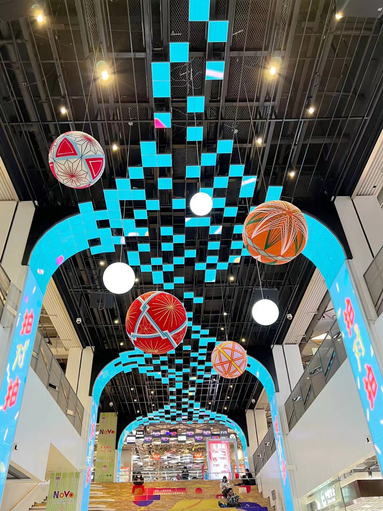 整个缤纷岁末,大宁国际化身为传承古今文化之美的艺术空间,在兼具传统文化和历史魅力的手鞠点缀下,洋溢出爱与希望交织的团圆氛围。2006年大宁开业之际提出包含“大吉大利”在内的一系列“大”畅想。在文化艺术迅猛发展的当下,大宁国际以手鞠为载体重新演绎“大鞠大利”,向来者传递节日的圆满新意。