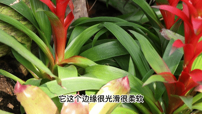 不光好看,果子蔓还是一种很有趣的植物。寿海洋告诉我们,果子蔓的艳丽而高耸的顶部不是一朵花,而是由花莛、苞片及基部的数枚叶片所组成的混合体。花茎上螺旋着生许多苞片,构成星形的花序,小花隐藏在苞片里。而它的叶片光滑柔软,叶缘不具齿或刺,因而对有小孩和宠物的家庭也不会造成伤害。