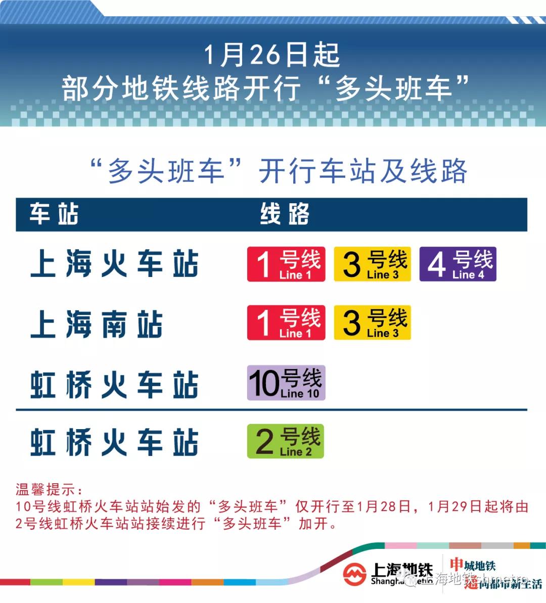 为应对返程高峰,1月26日起,地铁1、2、3、4、10号线将开行“多头班车”。详↓