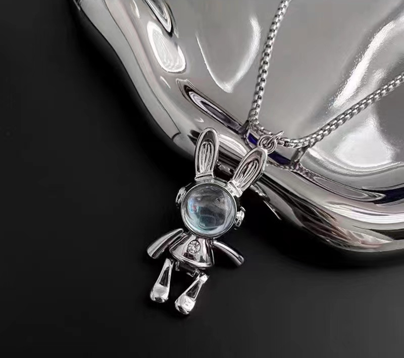说完耳环,还有项链。跃兔造型的设计,略微淡化了兔子的软萌可爱,而多了一分线条感,适合佩戴的年龄范围与人群也更加广泛。此外,饰品也未必是女生的专属,钛钢材质的宇航员兔子,帅气中又带着可爱,非常适合男生搭配在卫衣或者毛衣外。