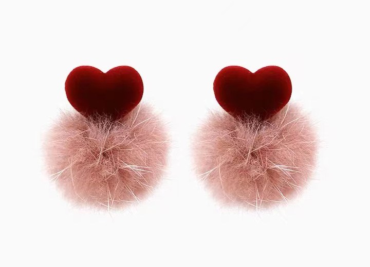 冬日里,毛绒绒暖乎乎的东西格外惹人爱,将红色与毛绒绒相结合,堪称过年的又一爆款,这副耳环就用到了这样的设计。红色的爱心配上圆圆的毛球,十分喜庆的同时又兼具可爱,与冬日的季节和即将到来的春节堪称绝配。