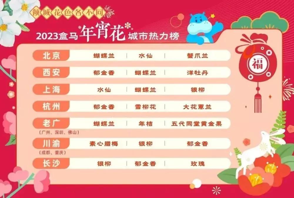 我们关注到盒马近日发布了《2023年宵花城市排行榜》