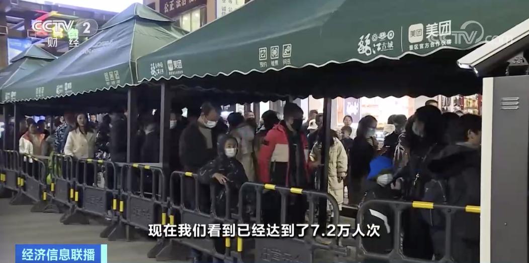 云南丽江古城景区管理服务分公司接待员 赵婧:前两天,瞬时的最大人流情况达到了8.7万人次,现在已经达到了7.2万人次。