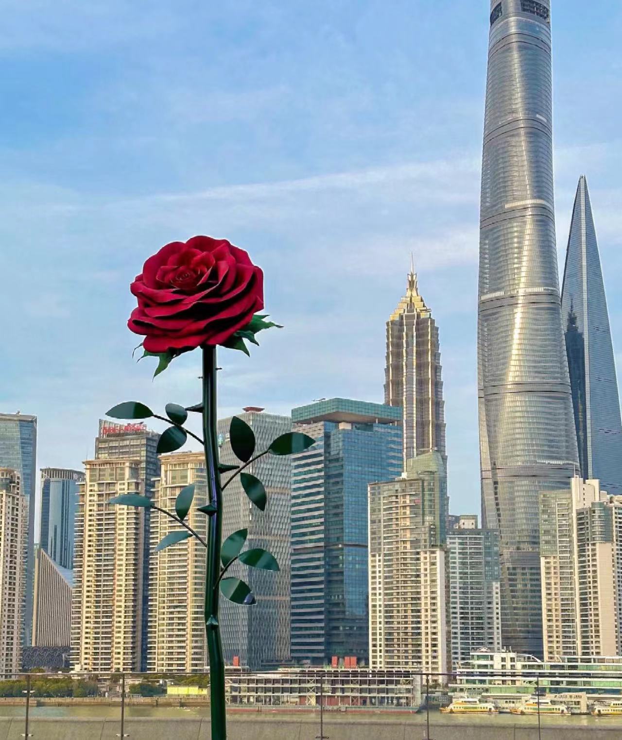 “邂逅小王子的玫瑰”“打卡空中花园”……这一朵独自成景的巨型玫瑰盛开在BFC外滩金融中心南座五楼露台,进入商场后可以乘坐直达电梯前往打卡。正对着陆家嘴三件套的它在蓝天白云下格外美丽。实地体验后发现,如果是夜间前往,推荐尽量避开正面拍摄,防止夜间灯光照在脸上容易过曝。