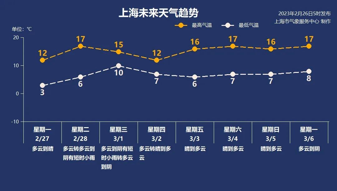2月28日,周二:多云转多云到阴有短时小雨 6-17℃