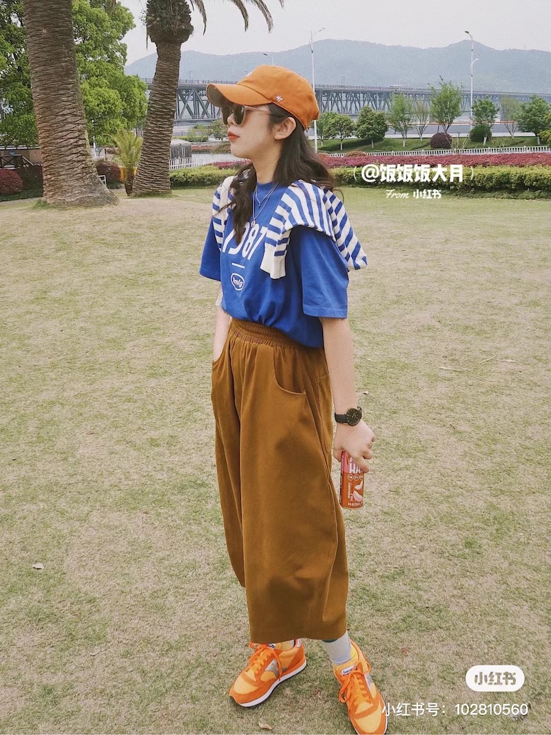 橙色的帽子挑眼之余,和绿色能够互相衬托,让人看上去颇有活力,更添一份复古感。渔夫帽还能够与整体的休闲穿搭风格呼应。