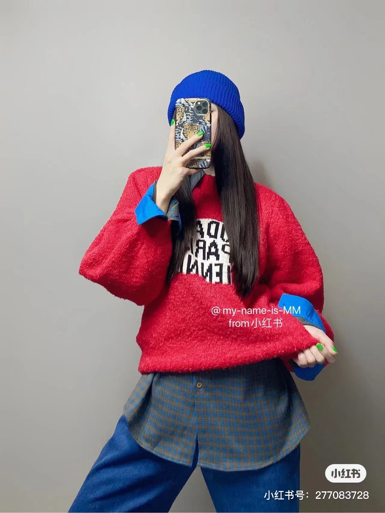 如果将蓝色“戴”在头上,也是不错的选择。一顶与身上色彩拉开差距的帽子,可以为装扮打造独特的亮点。