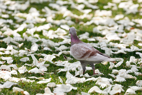 翠绿的草坪上铺满了洁白的花瓣,甚是好看。
