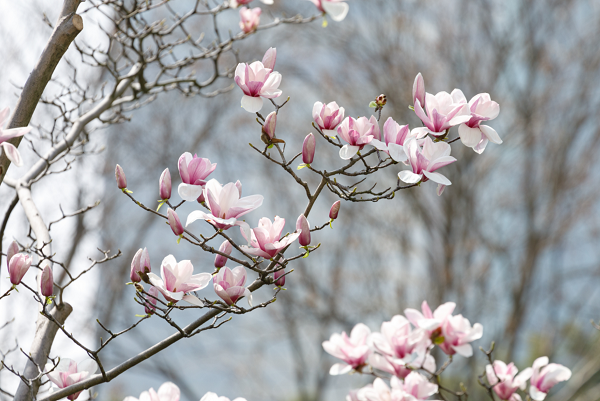 除了白玉兰、公园的二乔玉兰和紫玉兰等都在全面盛开,红紫白交相辉映,蔚为壮观,上演了一出玉兰闹春的热闹景象。