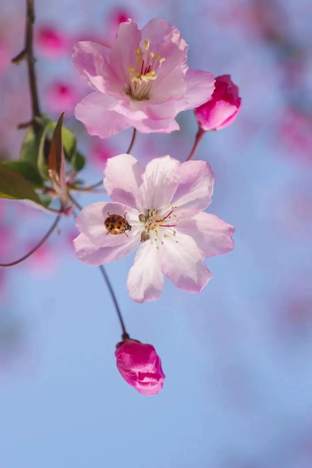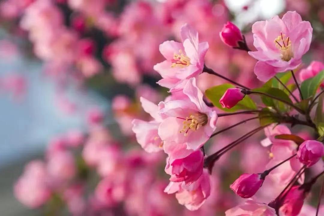 阳春三月,“起早”的海棠开花了!目前上海植物园内的海棠新品种‘香玉棠’、‘彩玉’已悄然绽放。