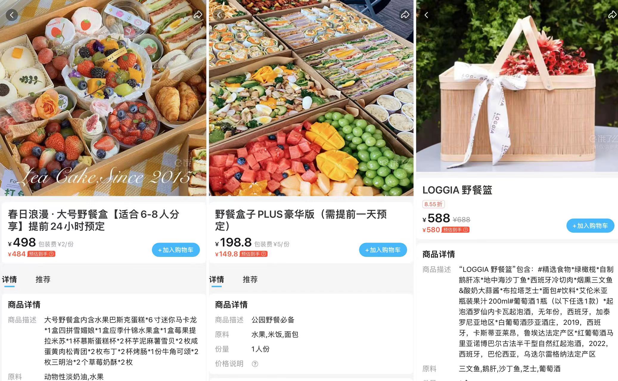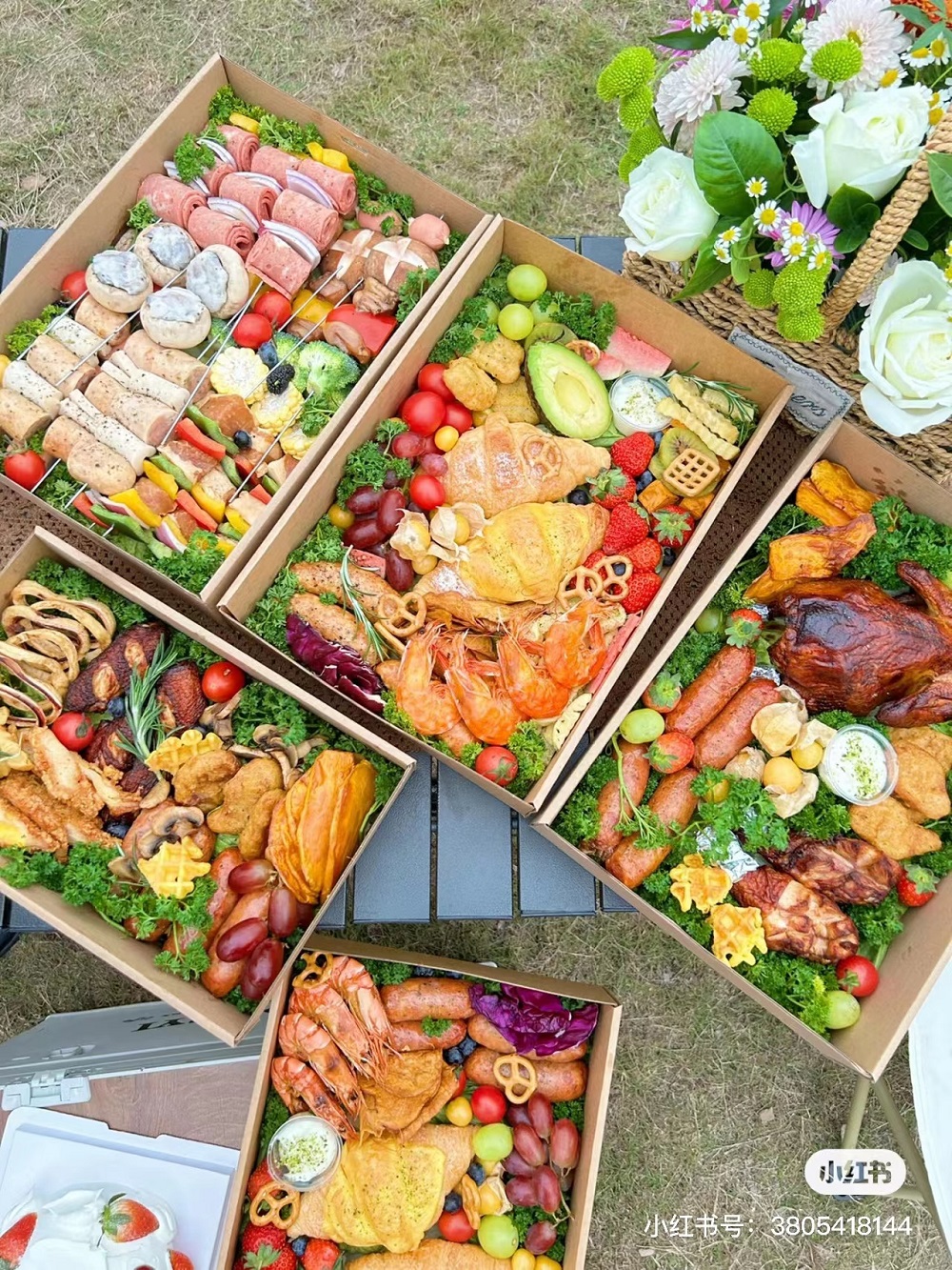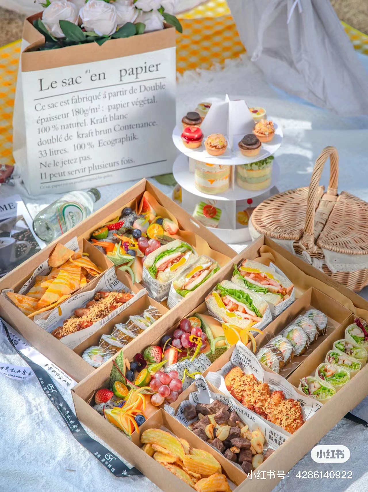 如果野餐的人数比较少,又懒得盆盆碗碗大包小包,那么现下流行的“什锦野餐盒”也是比较推荐的,集合了主食、小菜、甜点、水果,营养均衡又方便,摆盘精致色彩丰富,拍起照来也是称霸朋友圈。网上有现成的套餐可以购买。