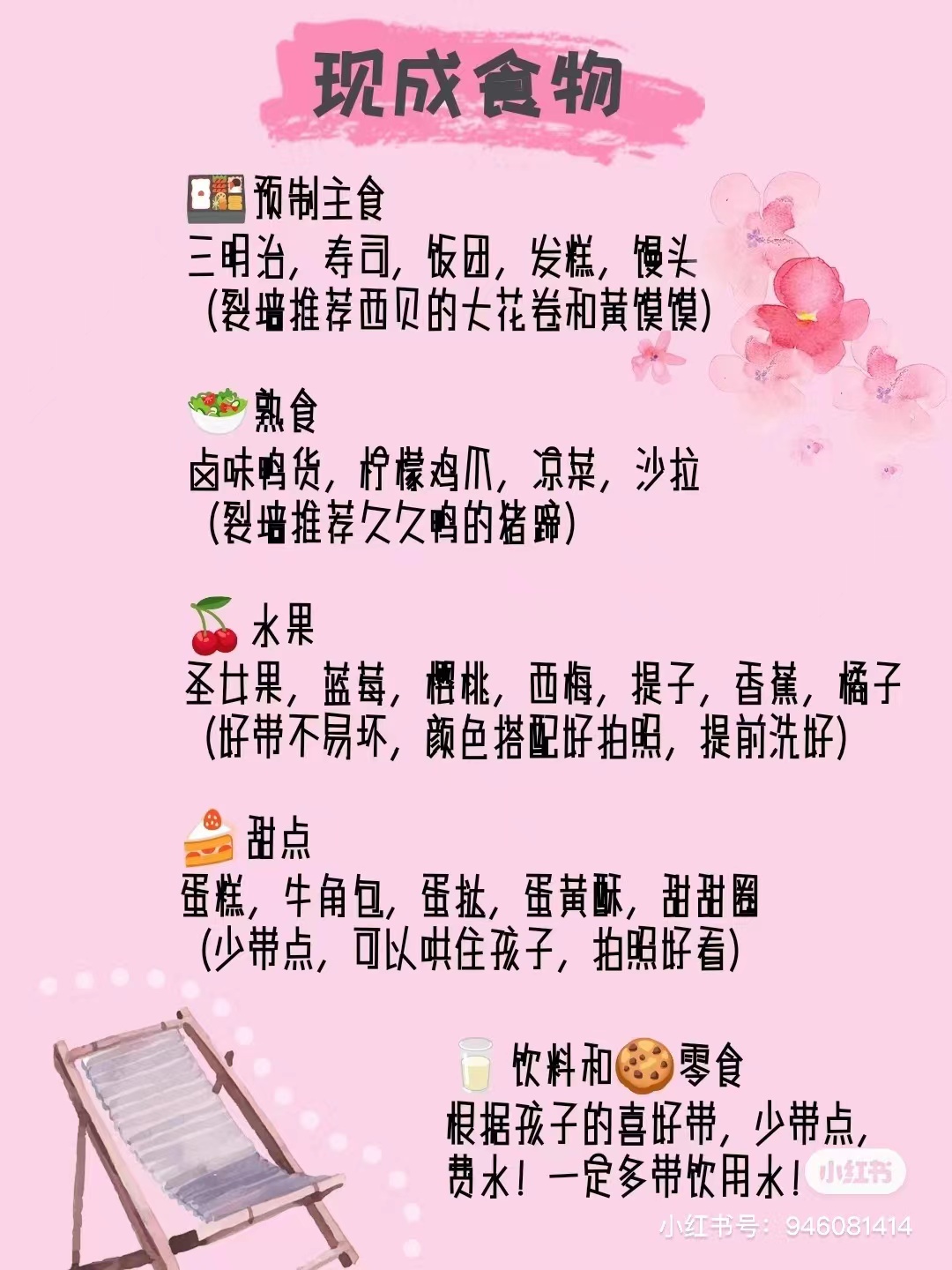 此外,为了提升春日氛围感,一些实用小道具也是必不可少的。会让你的野餐增色不少,心情也会跟着亮起来哦!(这部分就不详说啦)