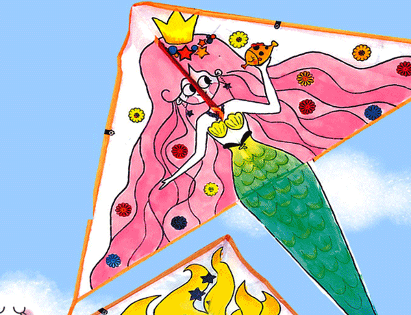 然后,选一个风和日丽的日子,带上亲手绘制的风筝,出门踏青!徐徐地移动脚步,轻拉风筝线,天空留下一条清新的痕迹,让靓丽的色彩和明媚欢笑划过,给这个春天抹上一笔绚丽的油彩。