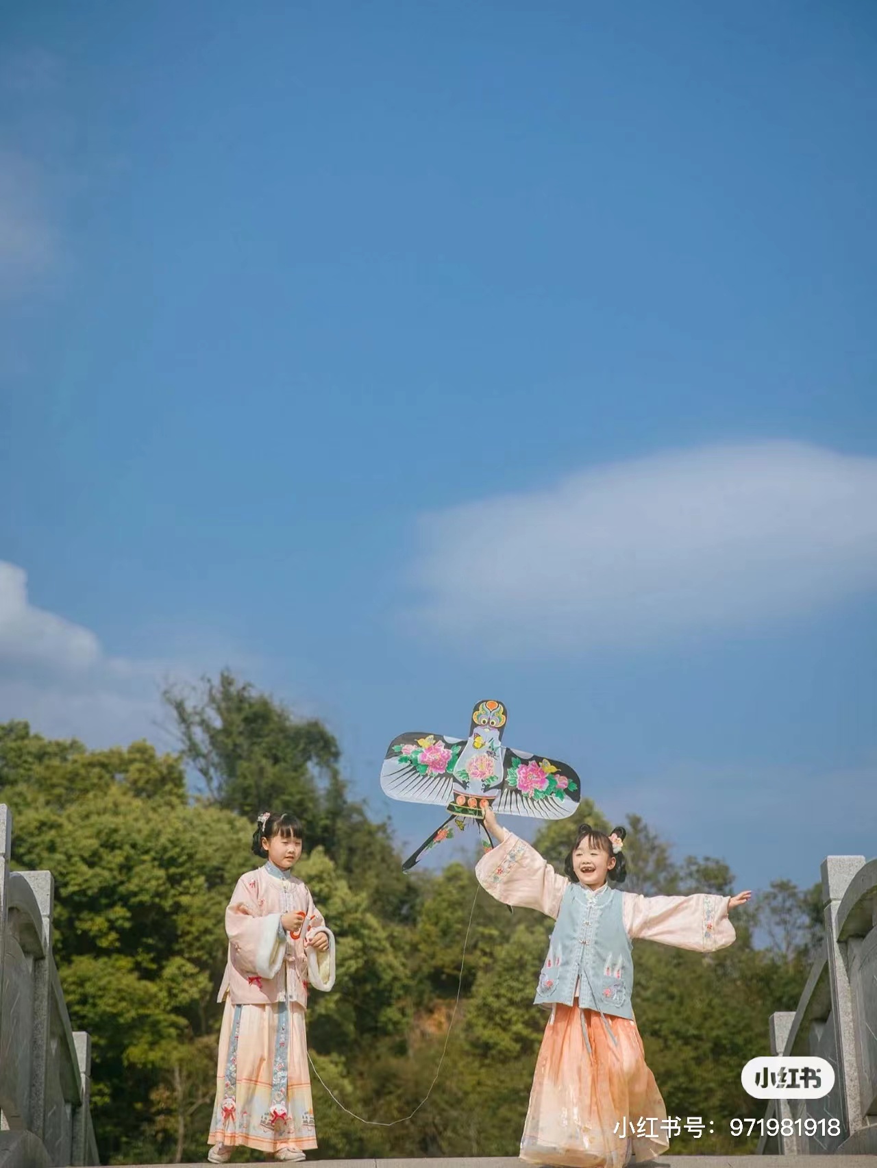 现在还有很多爱好传统文化的朋友会特意穿上汉服去放风筝,一袭汉服,缕缕清风,春明景和处,国潮氛围一下子被拉满。