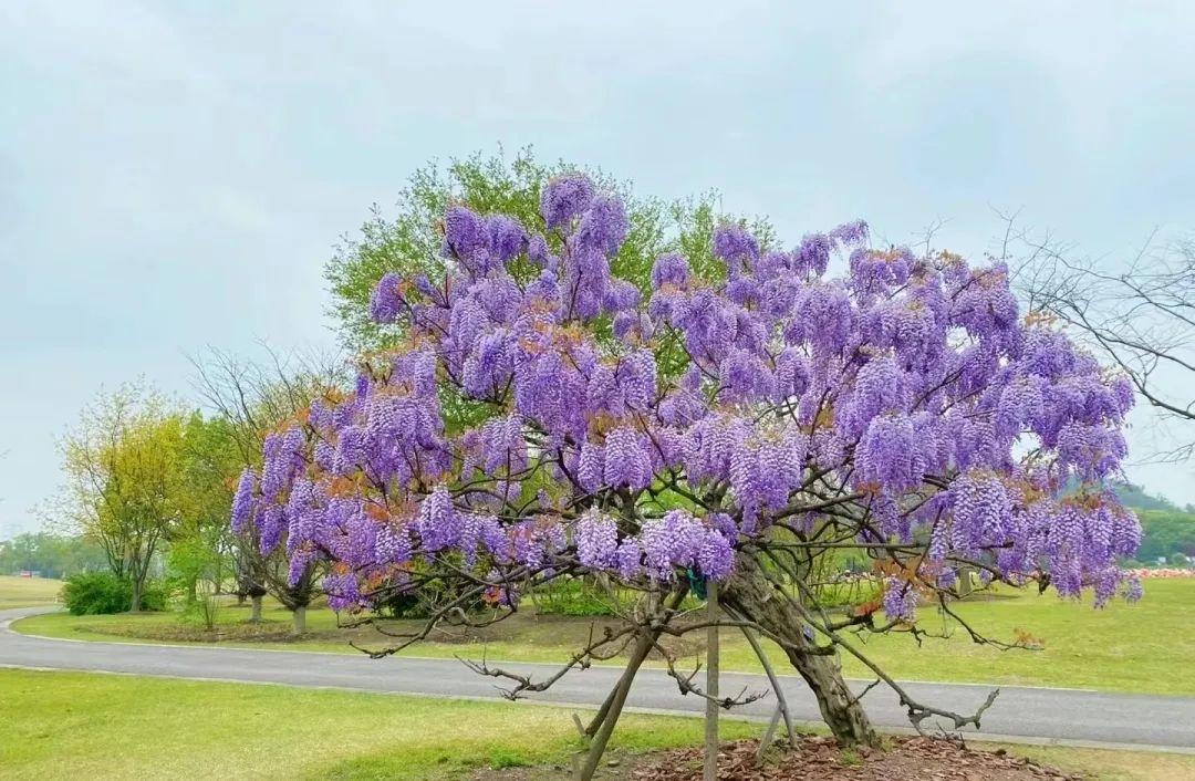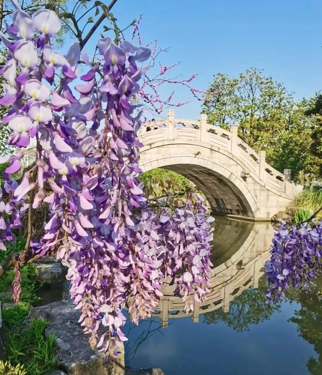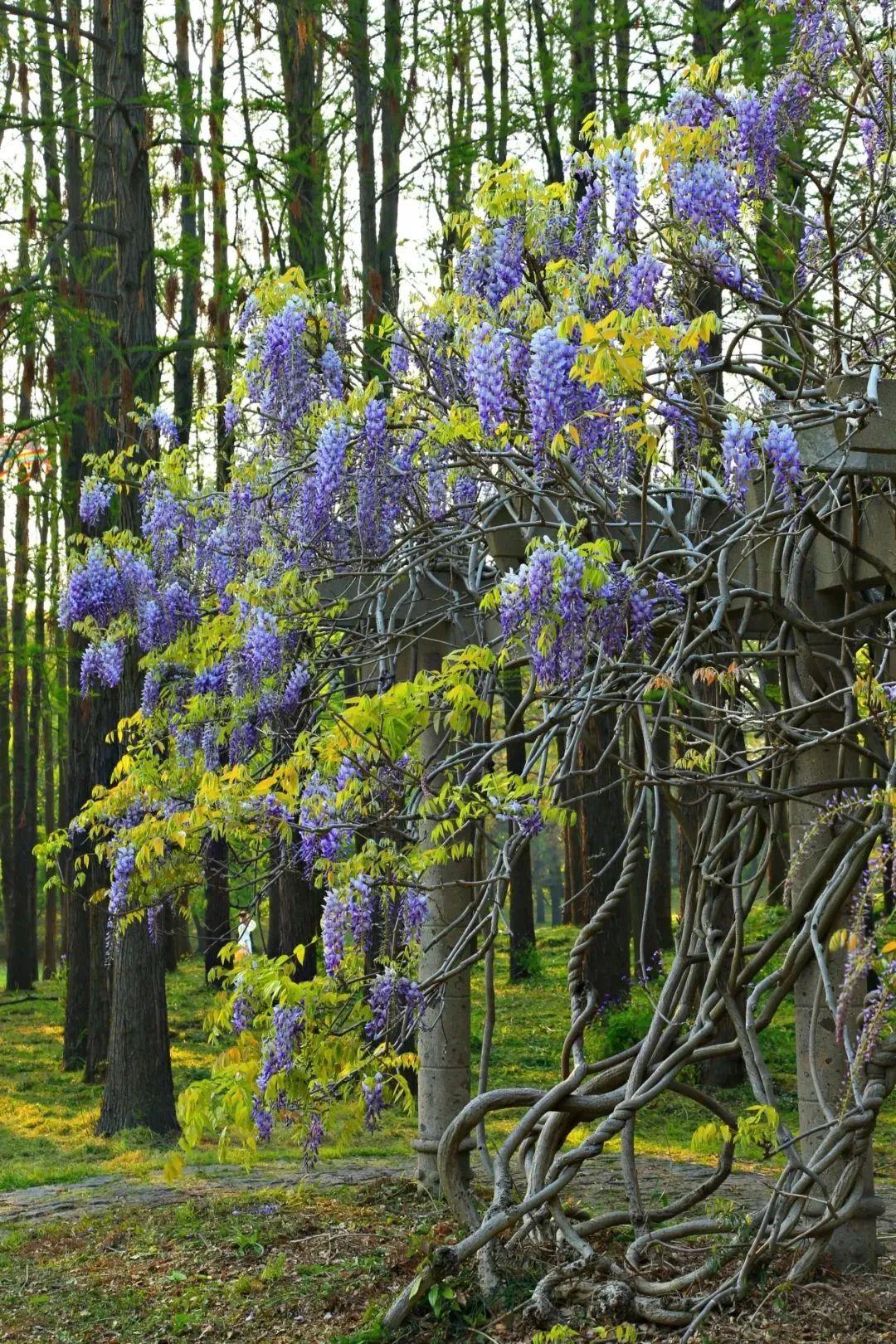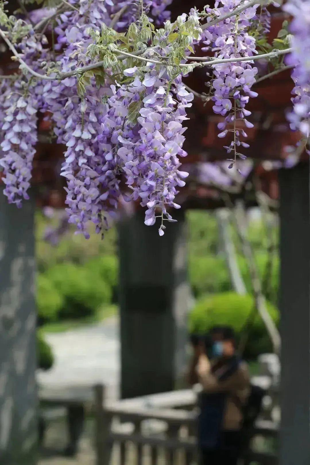 目前园内的游船码头、盆景园、茶园附近都有紫藤花开,层次丰富的紫色调花朵与枝叶相互交织,构成了一幅极具艺术感的画面。趁着春日正好,去赏花吧~